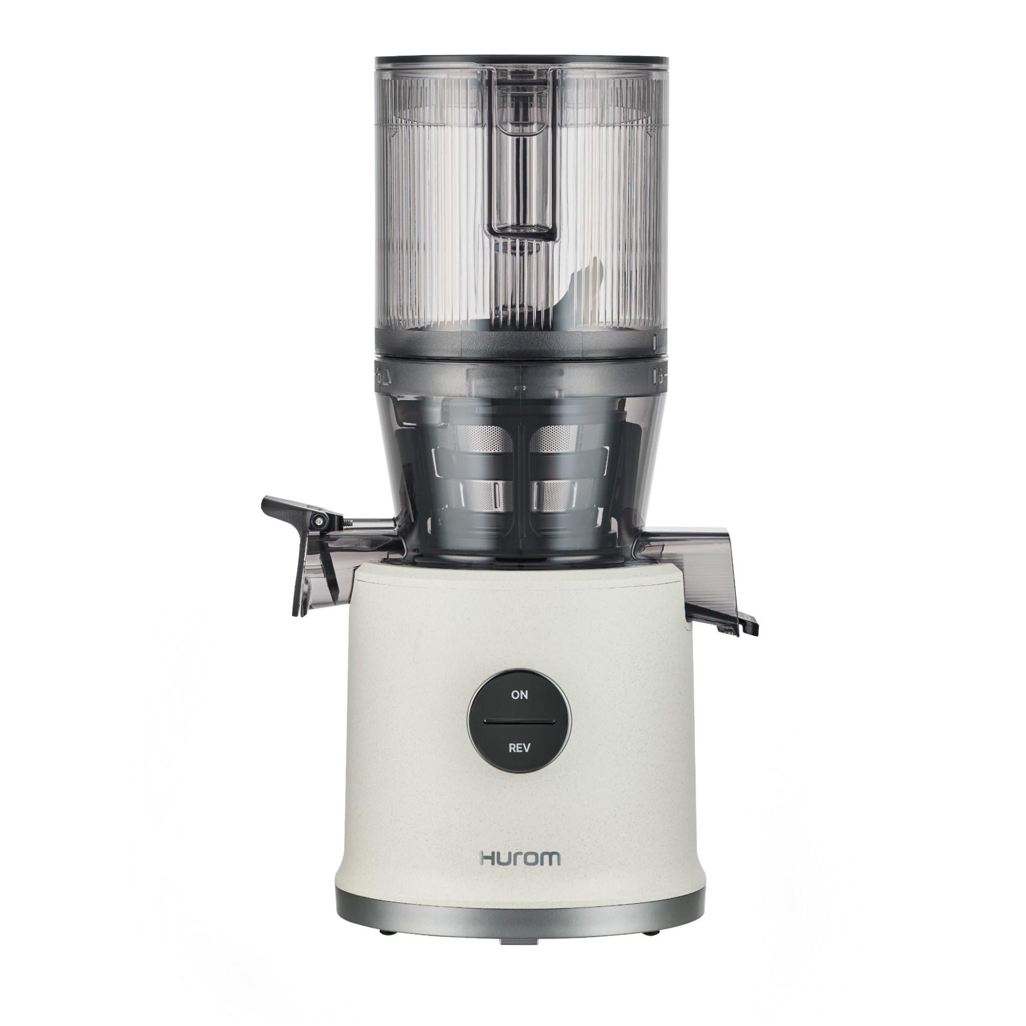 The Hurom H80-ST is quick and intuitive to assemble: First, insert the strainer, wiper and auger into the juicing chamber. Then place the feeding chamber onto the juicing chamber with a turn to the right. The fully assembled juicing unit is then placed onto the motor base according to the juice and pulp outlet guides.