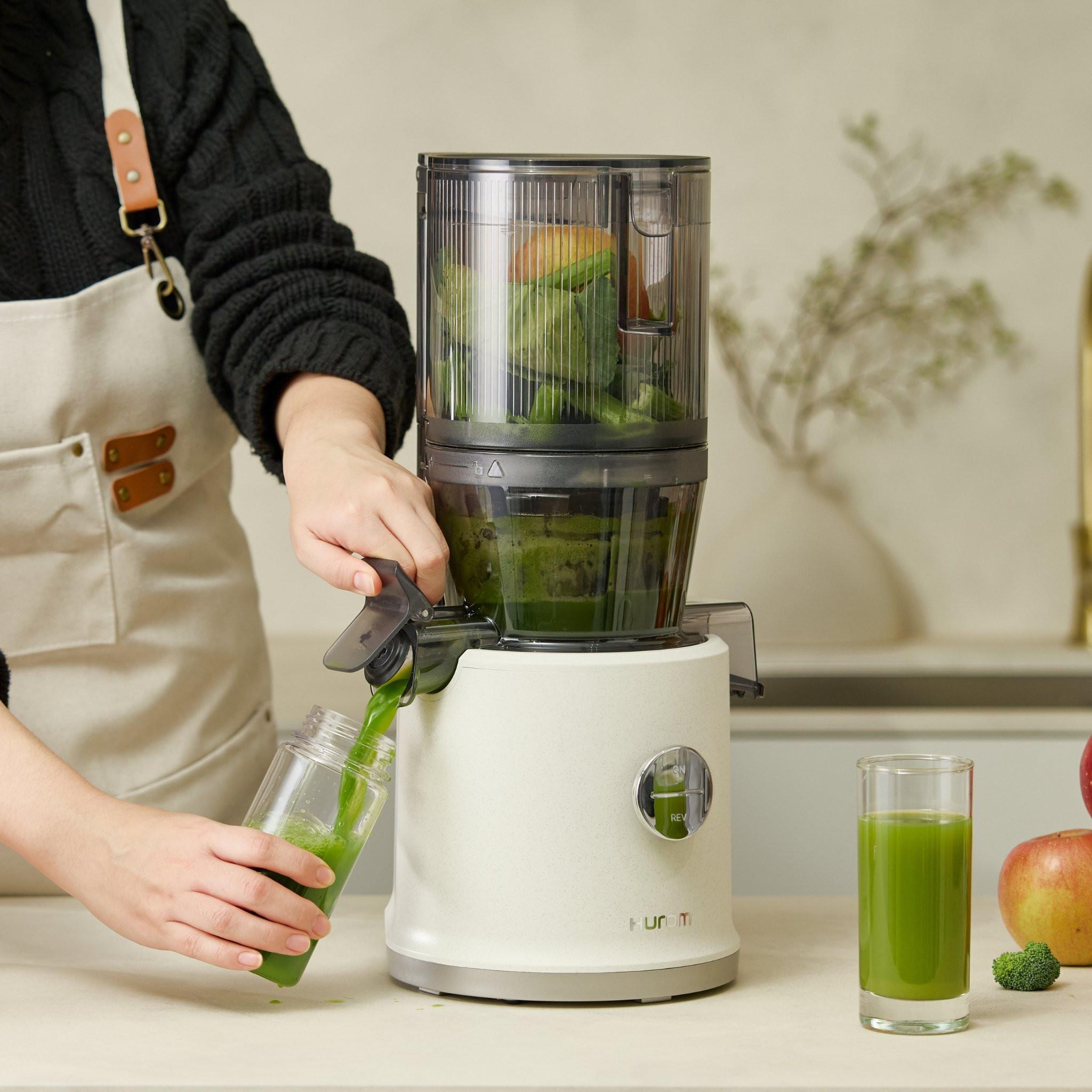- Time-saving in the morning: Simply chop the ingredients in the evening, fill the feeding chamber and store it in the fridge. In the morning, the Hurom H80-ST juices while you brush your teeth or take a shower.
